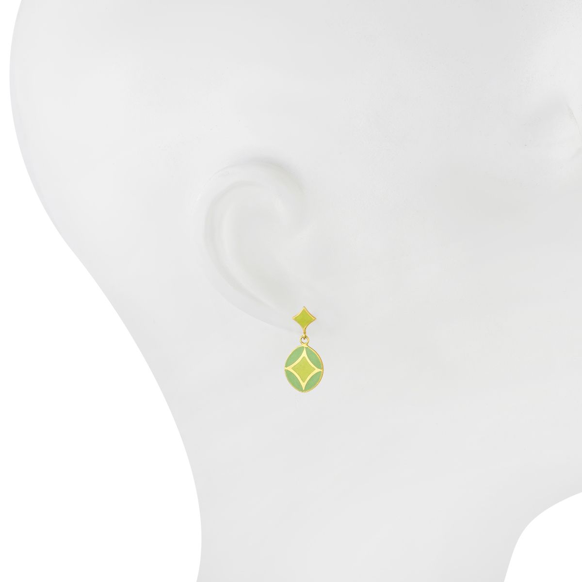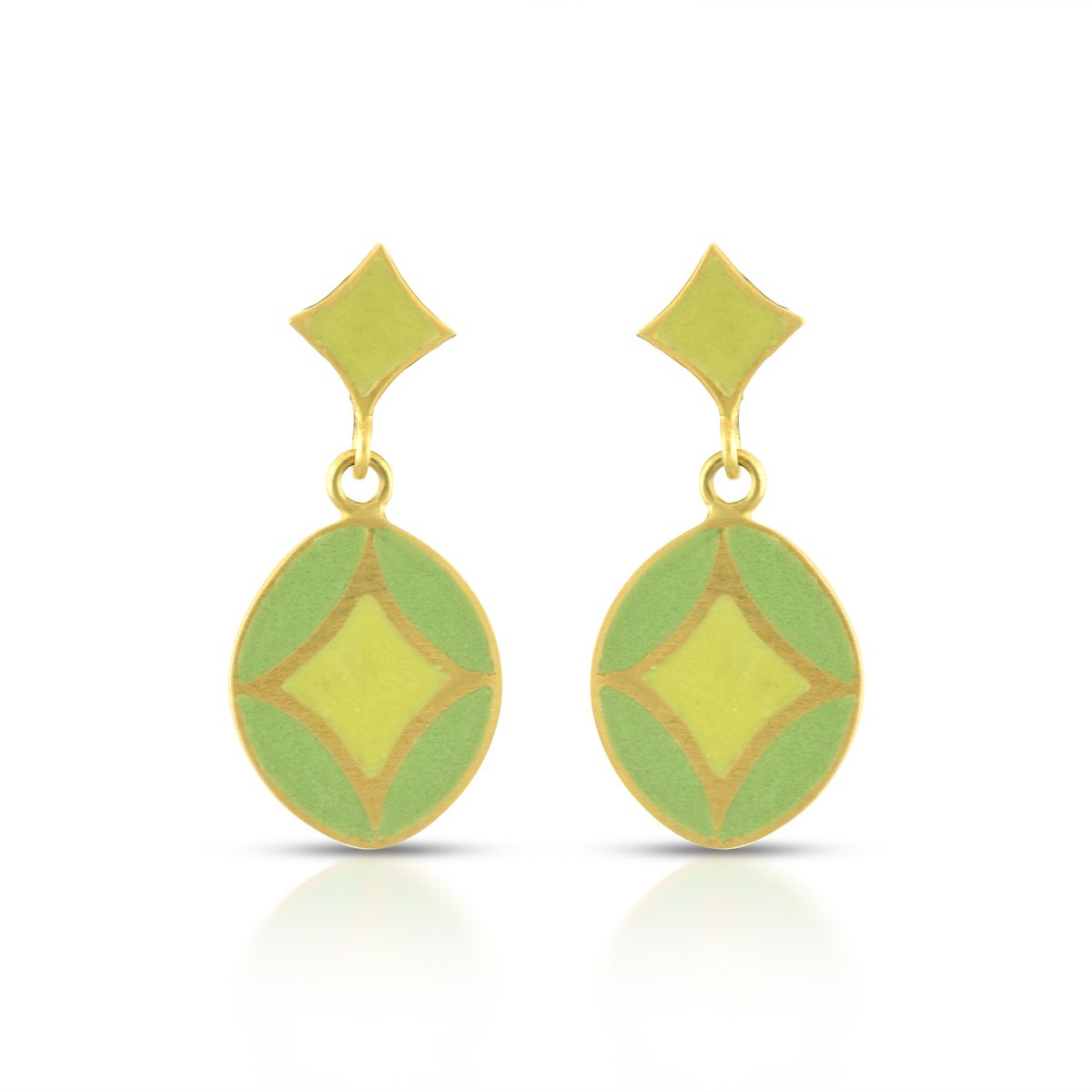 Green Enamel Earring Crafted In 18Kt Gold